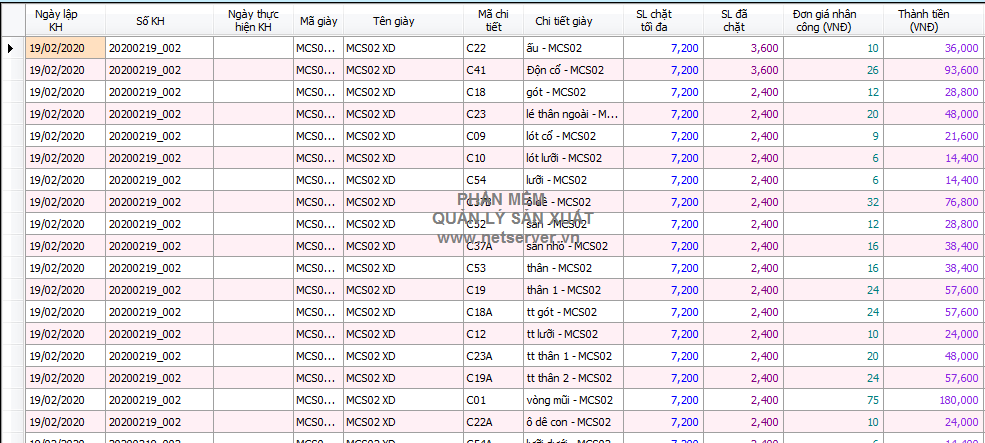 Cung cấp phần mềm Quản lý sản xuất trong ngành giày dép